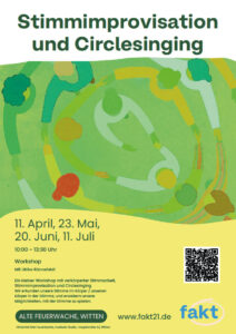 Ein kleiner Workshop mit verkörperter Stimmarbeit, Stimmimprovisation und Circlesinging. Wir erkunden unsere Stimme im Körper / unseren Körper in der Stimme, und erweitern unsere Möglichkeiten, mit der Stimme zu spielen.